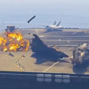 美航母此前已经多次被无人机“教做人”。去年4月,“杜鲁门”号航母为躲避胡塞武装的无人机,一个紧急机动,将一架F-18E战机甩进了海里。而一个多月前,一架伊朗无人机靠近“林肯”号航母,美军不得不出动F-35C将其击落,但在击落前,伊朗无人机还回传了美军航母的甲板画面。