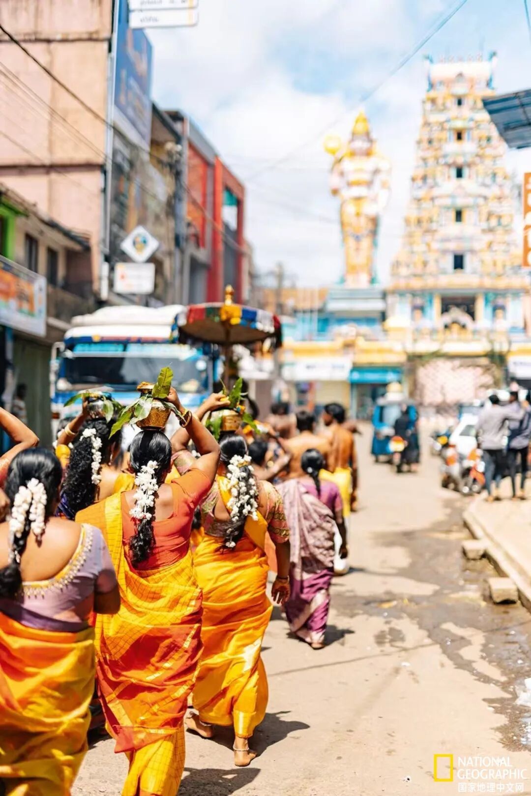 山谷之下便是拉加拉(Ragala),这里世代居住着拥有泰米尔血统的茶园工人群体。小镇中心矗立着斯里·卡蒂尔韦劳塔斯瓦米神庙,是全镇居民欢聚庆祝、凝聚人心的场所。| 国家地理图片集